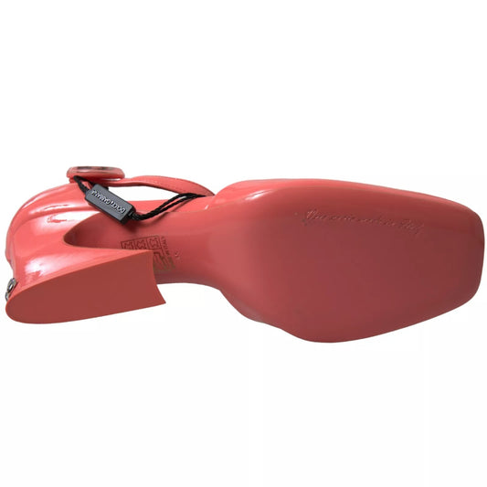 Peach Leather Ankle Strap Heels Sandals Shoes