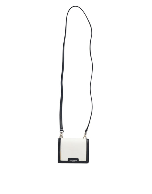 Beige Black Leather Card Holder Crossbody Men Borse Bag