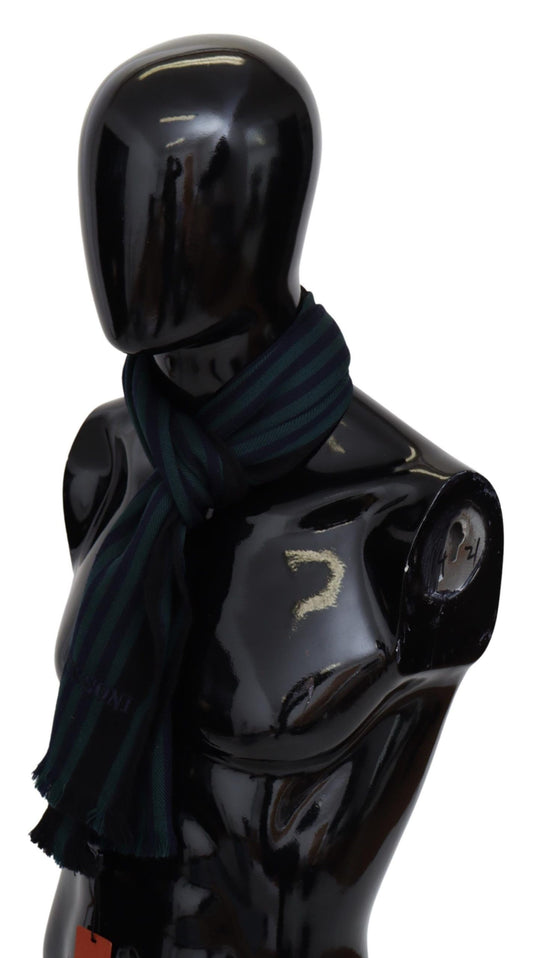 Dark Gray Virgin Wool Striped Pattern Wrap Scarf